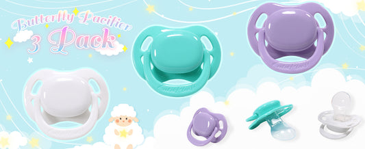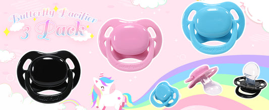 Butterfly Shape Adult Pacifier 3 Pack-Pink, Blue, Black
