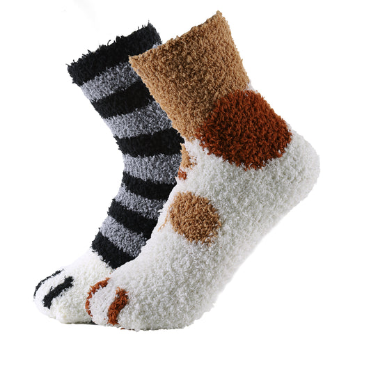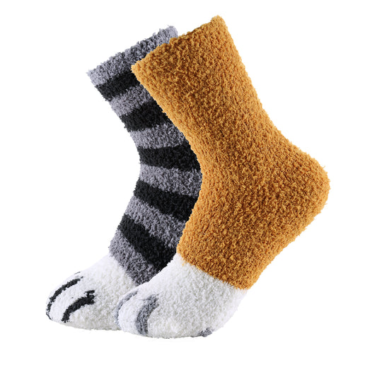 Cat Paw Slipper Socks 2 Pack-Brindle