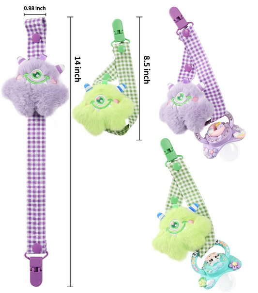 Baby Monster Pacifier Clip - Purple & Green