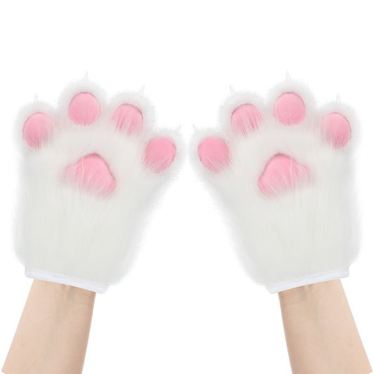 Plush Furry Paws Gloves - White Pink