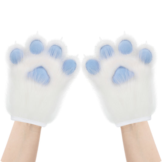 Plush Furry Paws Gloves - Blue