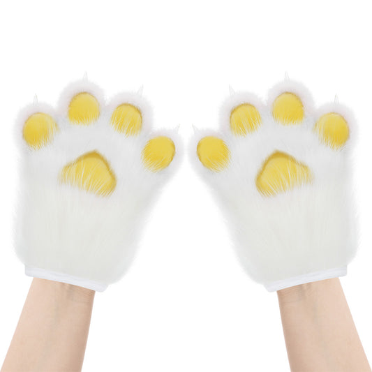 Plush Furry Paws Gloves - Yellow