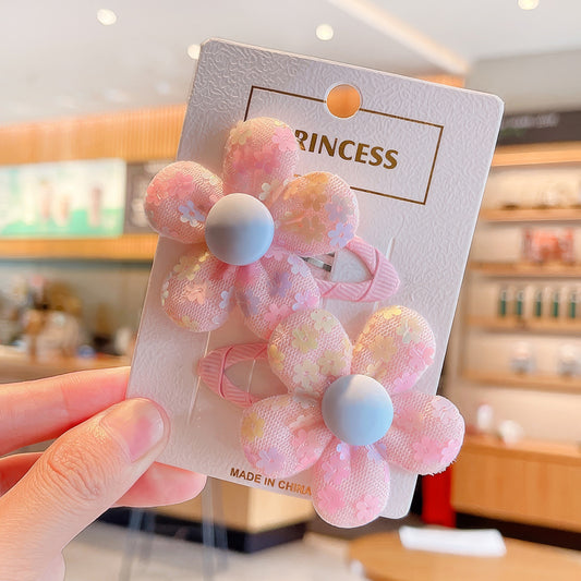 Sequined Flowers Hairpin 4pcs - Pink & Purple