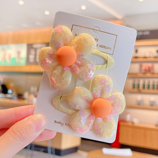Sequined Flowers Hairpin 4pcs - Orange & Green