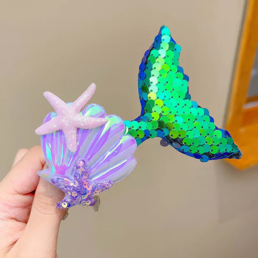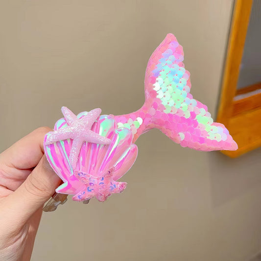 Sequined Mermaid Hairpin - Pink & Rainbow