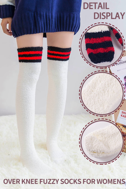 Women High Fuzzy Socks 1 Pair WhiteRed