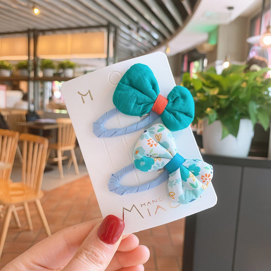 Fabric Flower Hairpin 2pcs - green