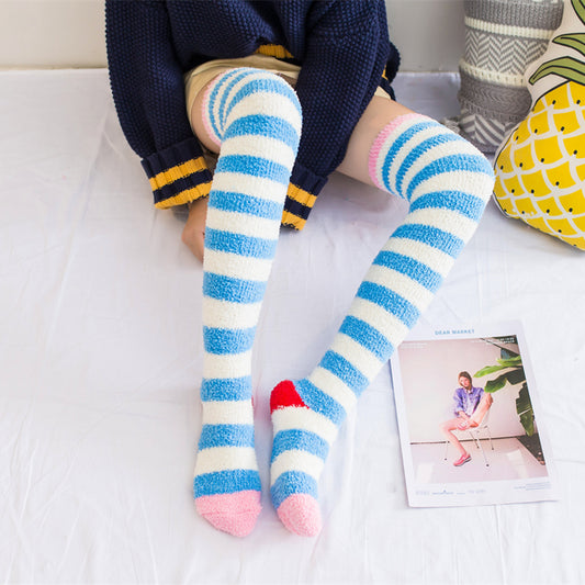 FLEECE SOCKS-Striped Pink