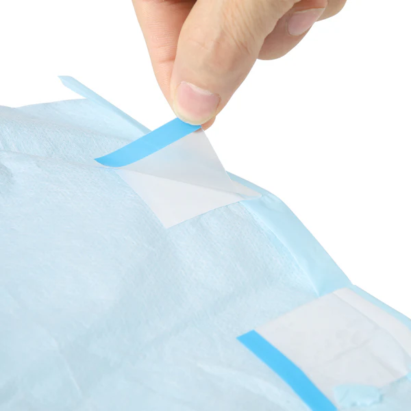 - Absorbent Core: The use of imported fluff pulp and super absorbent polymer to improve the water absorption of the adult diaper; and increase the blue acquisition layer & acquisition distribution layer to allow the urine to accelerate the filling of the entire diaper.
