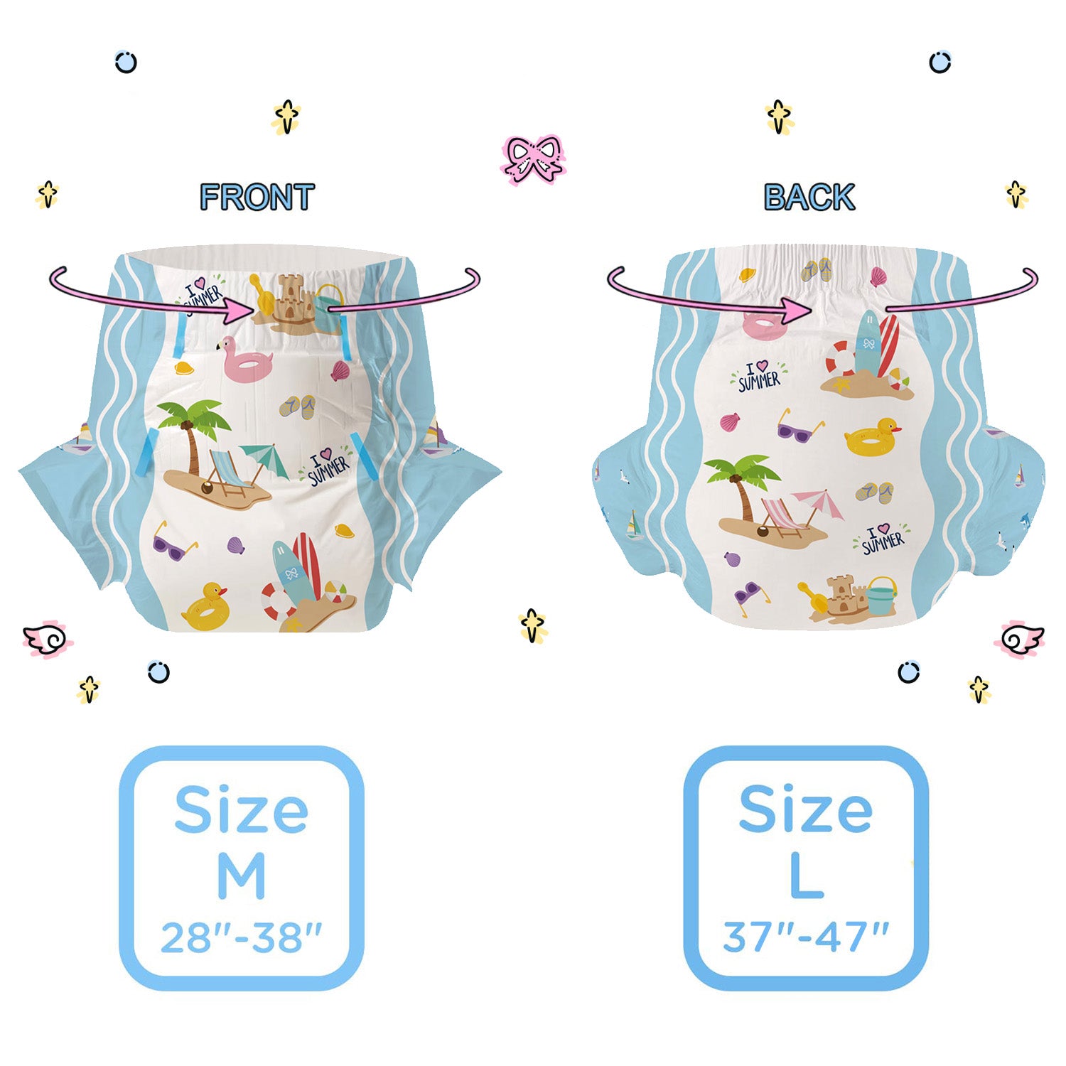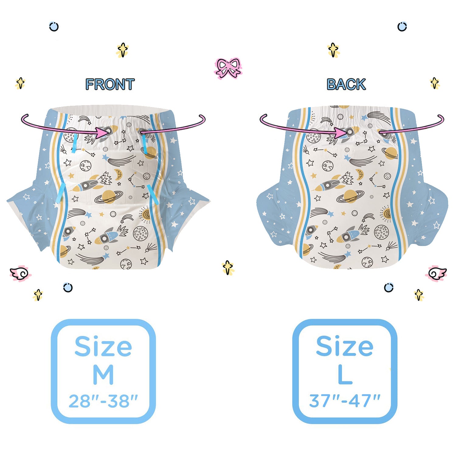 - This diapers are made with a strong PE back sheet on the outer layer for safety, and an ultra-soft. Four body-hugging PE tape securely fasten the diaper to the front waist.