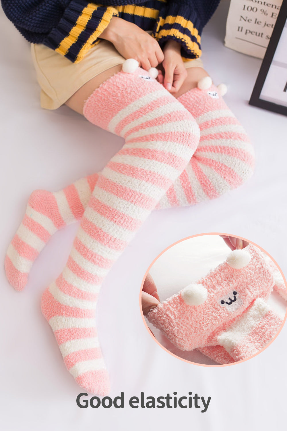 *Striped fuzzy stockings are stretchy, but not loose or sagging like other socks out there.