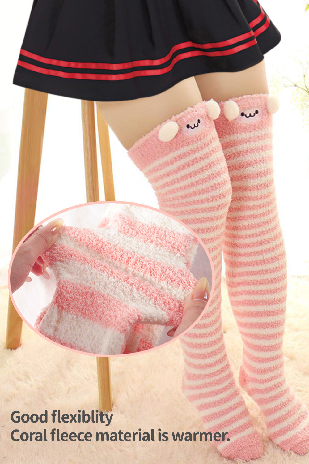 High Knee Socks-Coral fleece.