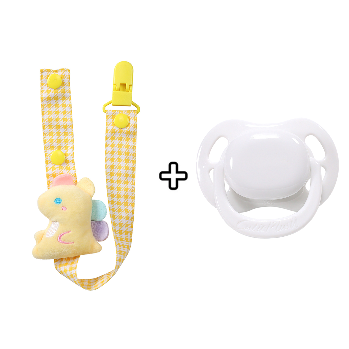 Pacifier with Dinosaur Pacifier Clip - Yellow