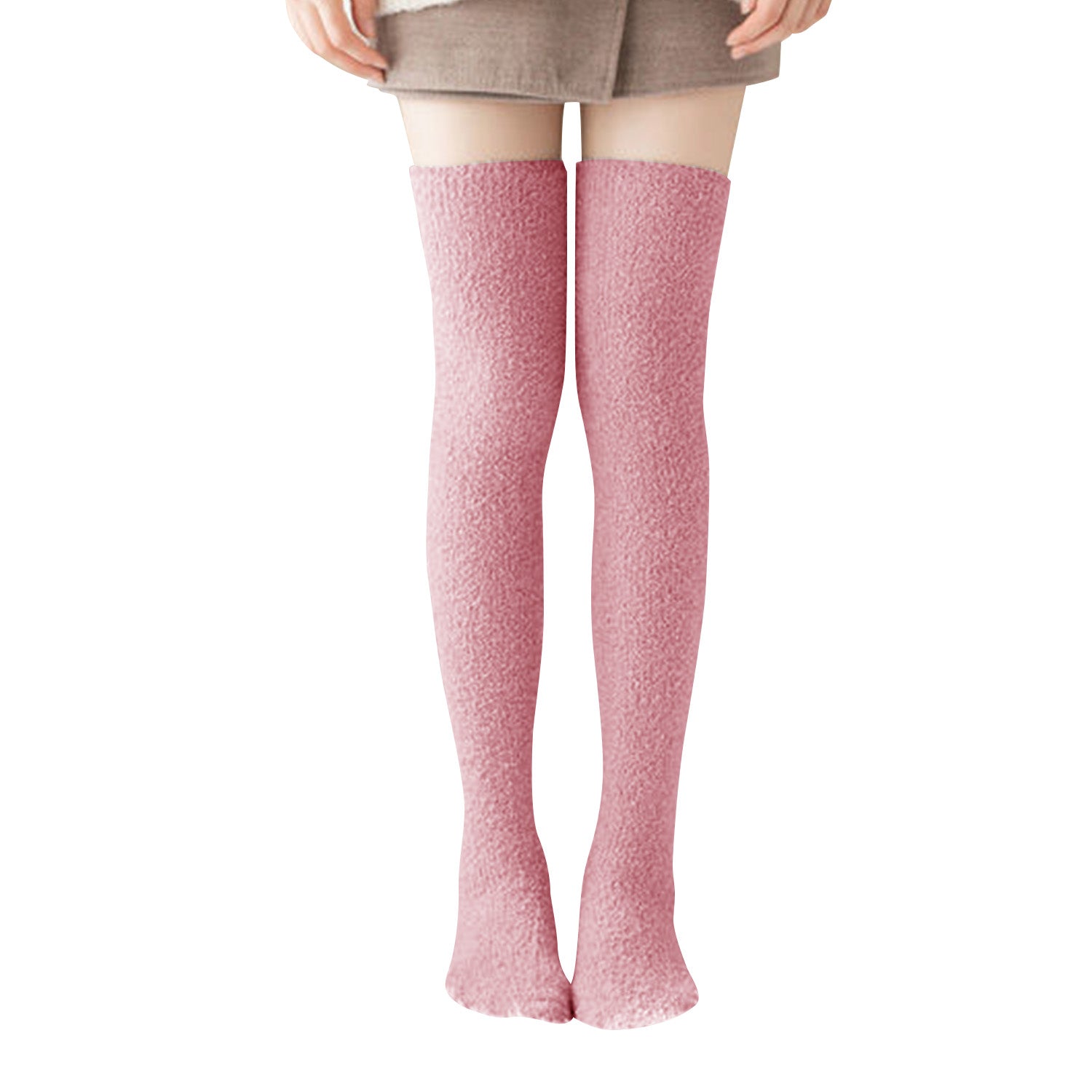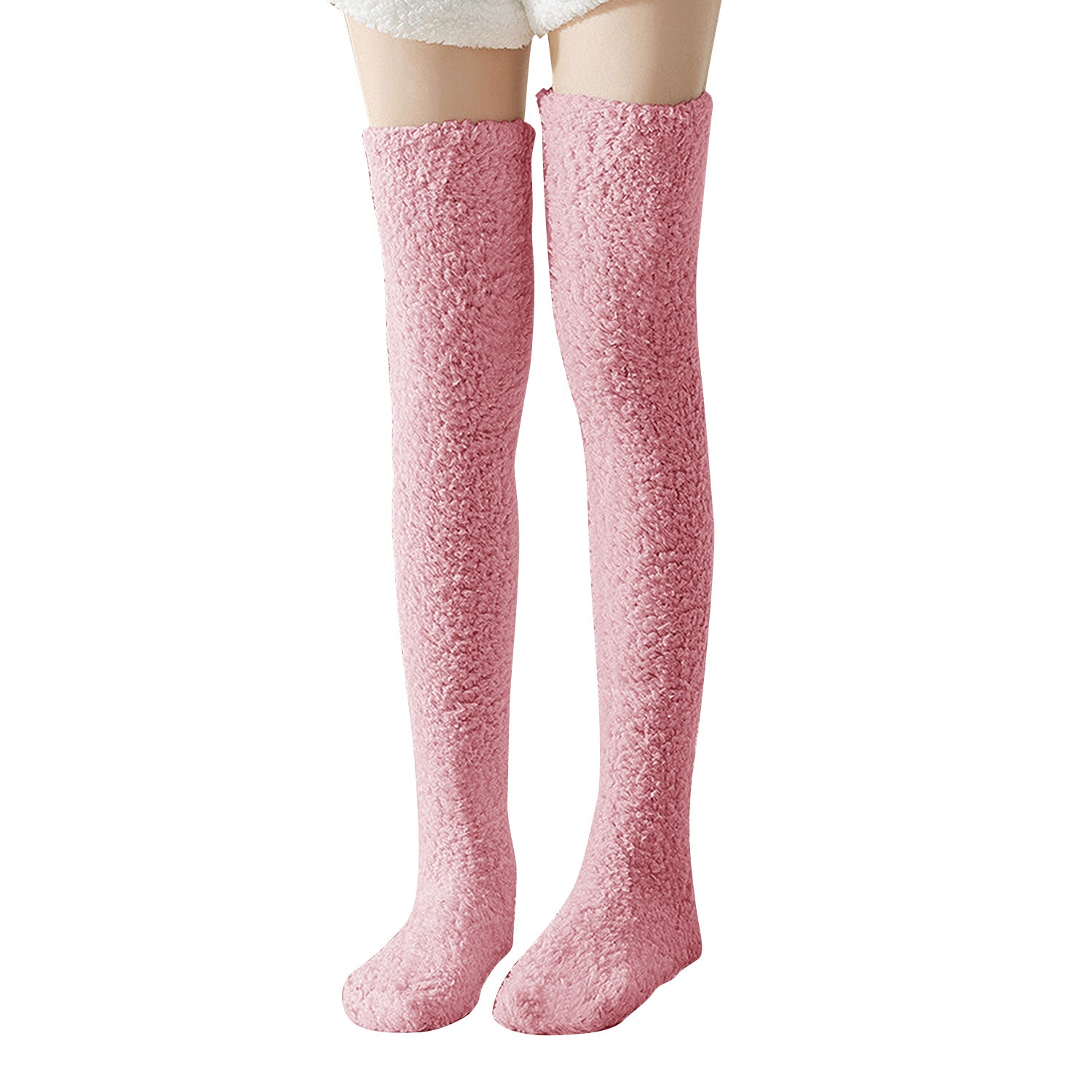 Thigh High Fuzzy Socks-Pink